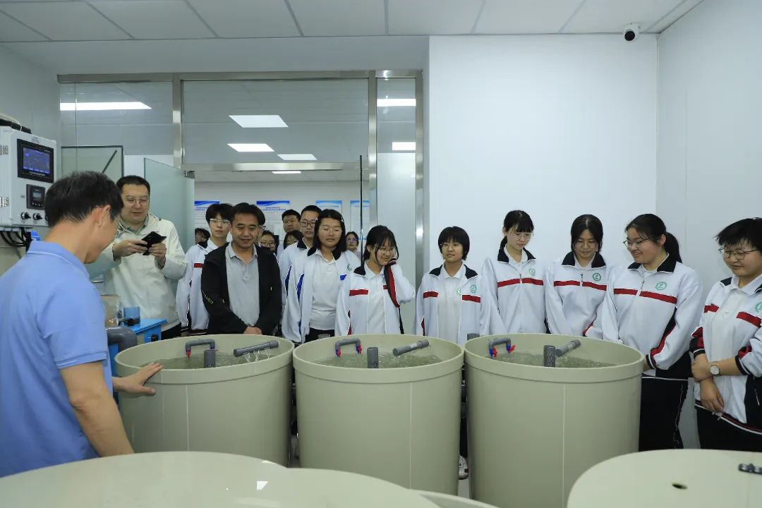 首先,同学们来到盐碱水养殖产业创新中心,在中心主任李春岭的讲解下,深入了解了盐碱水改良技术、绿色高效养殖模式以及鱼虾蟹智能化养殖体系,同学们亲身感受了沧州“向盐碱地要效益”的生态农业创新成果。