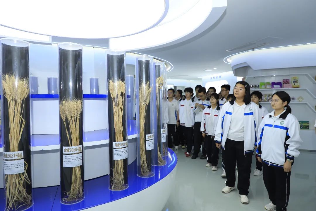 接着,同学们跟随工作人员的脚步,走进成果展示厅。展厅内,依次陈列初加工的全麦面粉、面条,精深加工的旱碱麦啤酒、添加不同比例麦麸的面包,以及加工研究院与当地企业合作的数种产品,直观地向同学们展现了“一粒麦”是如何从田间到餐桌的价值跃升。