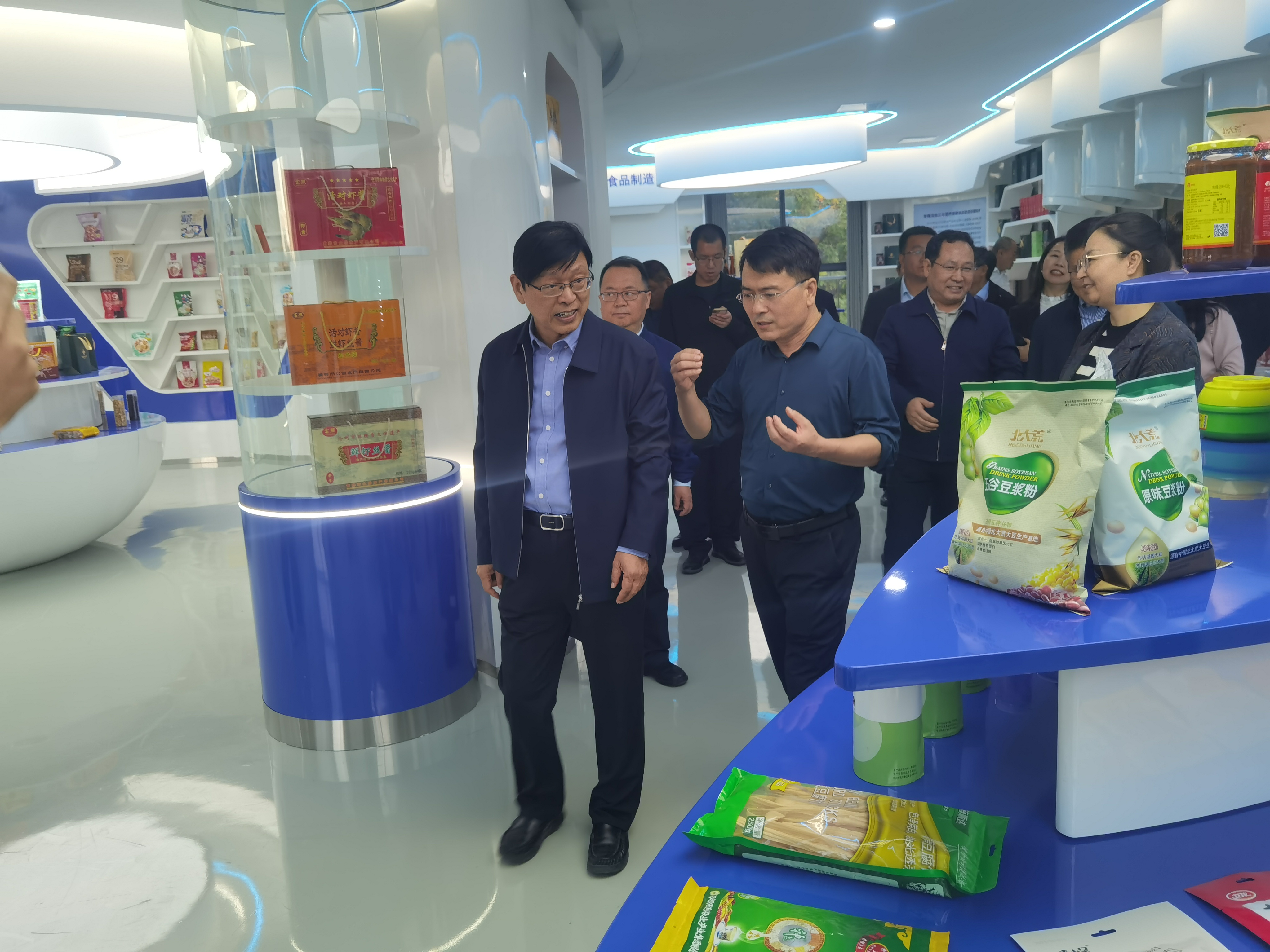 梁久丰主任一行重点参观了加工研究院的成果展示厅,通过实地察看、现场交流的方式,详细了解加工研究院的产品研发、科企合作、科技创新、科技成果转化情况。