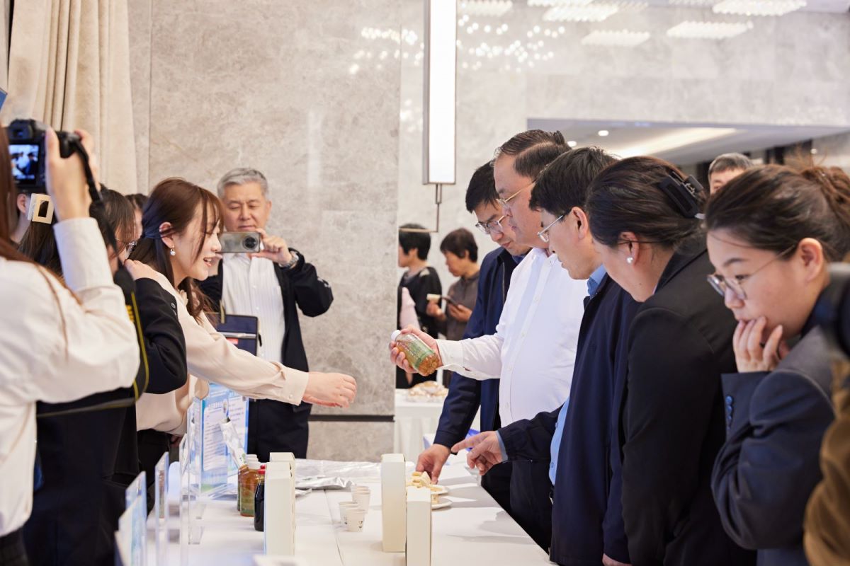 在旱碱麦产品展区,尹卫江副市长与加工研究院李明副研究员进行了深入交流,详细了解了旱碱麦的特色、标准、产业发展等方面的情况,现场品尝了旱碱麦麦麸面包、半干面、旱碱麦啤酒等产品。他强调,旱碱麦不仅要抓产量更要注重质量,要紧紧围绕特色化和高品质做文章,深入挖掘旱碱麦独特品质,开发营养健康系列产品,讲好旱碱麦故事,推动旱碱麦产业高质量发展。